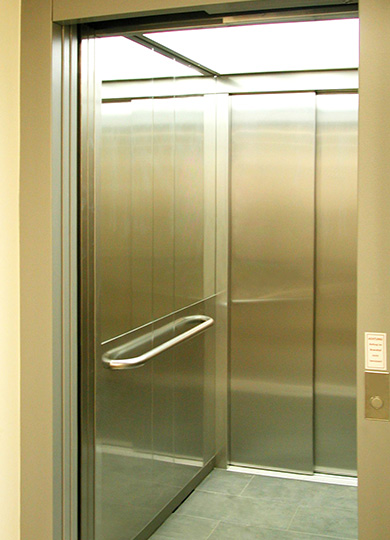Bei diesem Projekt handelt es sich um einen Aufzug in Standardausführung. Innen ist die Kabine mit Edelstahlpaneelen ausgestattet, die entweder geschliffen oder aber mit Struktur versehen sind. Ein einseitiger Spiegel an der Kabinenseitenwand vergrößert den Raum optisch, sorgt, vor allem für Rollstuhlfahrer, aber auch für ein erhöhtes Sicherheitsgefühl.