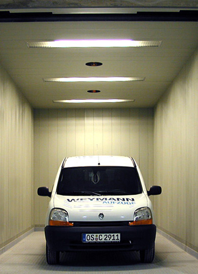 Der Lastenaufzug von WEYMANN AUFZÜGE ist durch seine enorme Tragfähigkeit von 13,2 Tonnen in der Lage, eine ganze LKW-Ladung aufzunehmen – oder, wenn nötig, mittelgroße bis große Autos – von Etage zu Etage zu transportieren. Seilbetrieben ist er ein sicheres und bequemes Transportmittel in der Industrie. Der Maschinenraum befindet sich aus Platzgründen über dem Schacht.Für einen ersten Eindruck haben wir Ihnen hier ein Bild und genauere Informationen hinsichtlich der Maße zur Verfügung gestellt.